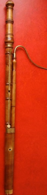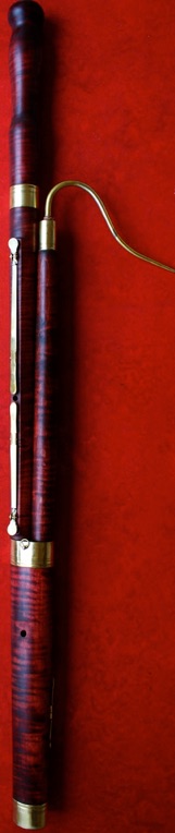 The original of this instrument has three keys but the fourth key (g-sharp) added to this copy is not out of keeping with the period. Having said that, I play this instrument as a three-key bassoon for seventeenth century repertoire by removing the g-sharp key and plugging the hole with beeswax.
